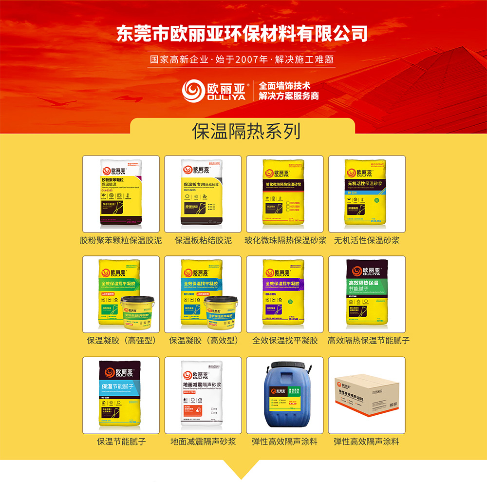 歐麗亞歷經近十載的誠信經營,憑借其優良品質和專業服務在業界贏得了良好的信譽。占地面積約1.2萬平方米,擁有三個獨立生產車間、獨立實驗室、樣板室并擁有十余套高速干粉砂漿混合機,形成日單班產量500噸的強大生產能力,并已通過了ISO9001國際質量管理體認證。