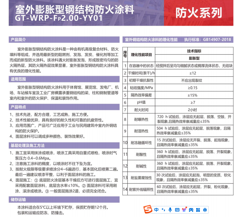 室外膨脹型鋼結構防火涂料