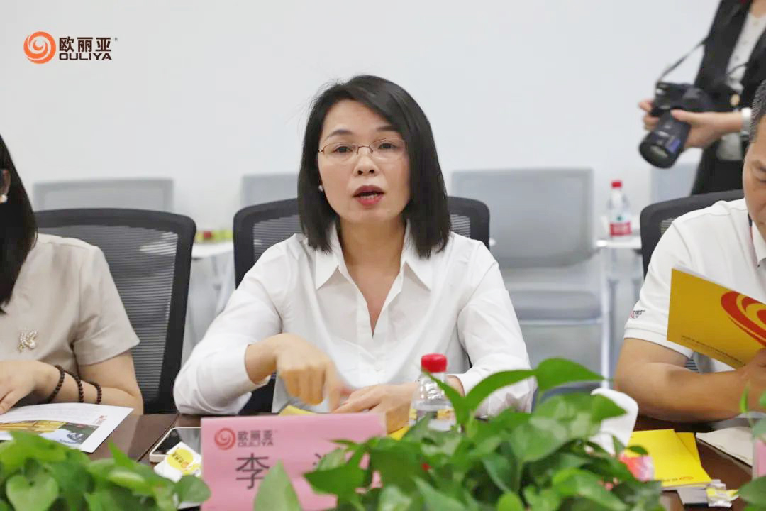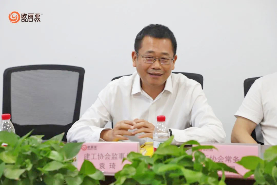 活動中,協(xié)會一行實地考察了歐麗亞智能化生產(chǎn)車間、創(chuàng)新研發(fā)中心及環(huán)保產(chǎn)品展廳,深入了解公司核心技術(shù)、生產(chǎn)工藝及市場布局。歐麗亞李總李清向協(xié)會成員介紹了企業(yè)“環(huán)保+科技”雙輪驅(qū)動的發(fā)展戰(zhàn)略,并分享了公司在低碳建材領(lǐng)域的創(chuàng)新成果與未來規(guī)劃。