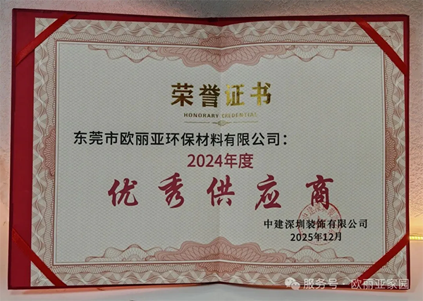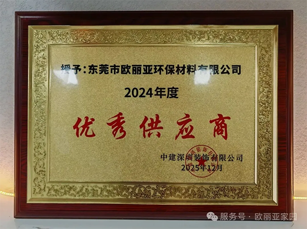 喜訊!歐麗亞獲評(píng)中建深裝「優(yōu)秀供應(yīng)商」獎(jiǎng)